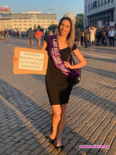 „Нямах никакво намерение да ходя в този вид на протестите, но приятелките ме накараха. Протестирам от първия ден, просто те ми казаха „Ето, ти си публична личност, защо не отидеш с короната?!” И всъщност наистина е неприемливо, ние носителките на титлата „Мис” да сме по-умни от министрите с купени дипломи, каквото е нашето впечатление напоследък”, признава хубавицата, пише „България днес”.