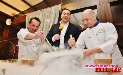 Под звуците на саксофон те се насладиха на изисканата атмосфера и вкусните блюда върху отрупаните маси, пише Хотарена. В атракция на вечерта се превърна ледения бар с логото на ресторанта.