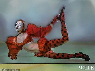 Лила Мос, дъщеря на супермодела Кейт Мос и редактора на списанието Джеферсън Хак, позира за модна фотосесия на тема клоун за мартенския брой на Vogue Испания.