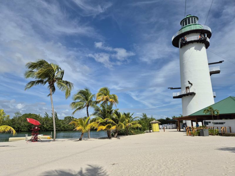 На нашия плаж имаше и кула, от която изстрелваха желаещите да полетят над плажа и океана и да финишират с наистина голяма скорост някъде насред мангровата гора от другата му страна. А на марината в близост видях за първи път специално пристанище за джетове, което виждате на снимка към текста. Само за джетове. Които мнозина яхат за разходка в открития океан, без да има опасност да блъснат някого - от кея излизат направо в Атлантика.